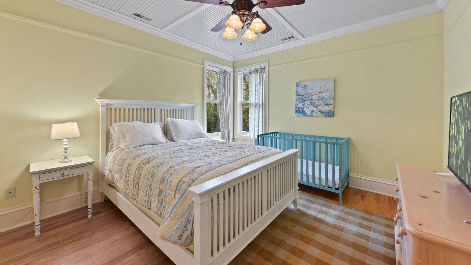 Upstairs there are 3 bedrooms each with a queen (sleeping 6 in total). In addition, 1 has a crib
