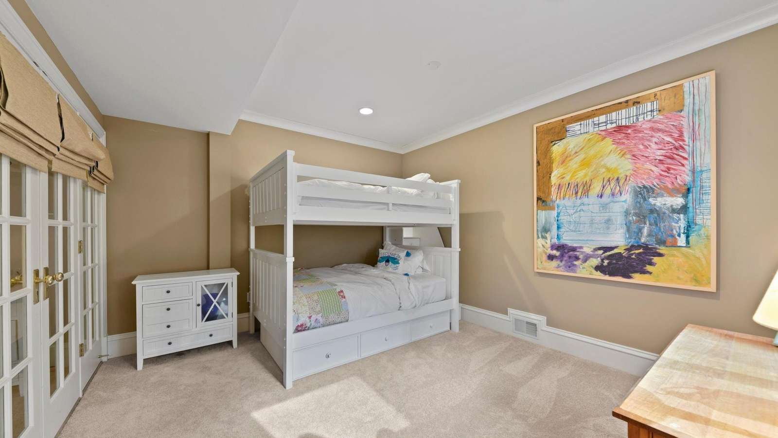 One bedroom has 2 full beds that are bunk beds as well as a single twin trundle bed (sleeping 5 people in the bunk room)