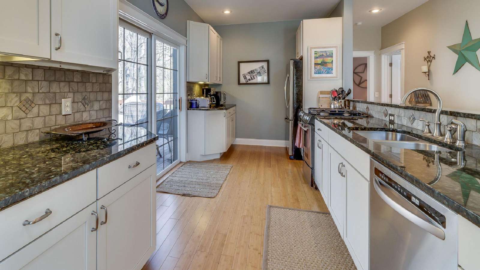 - The Living Space: Features granite countertops, stainless steel appliances, and a seamless flow from the kitchen to the dining area.